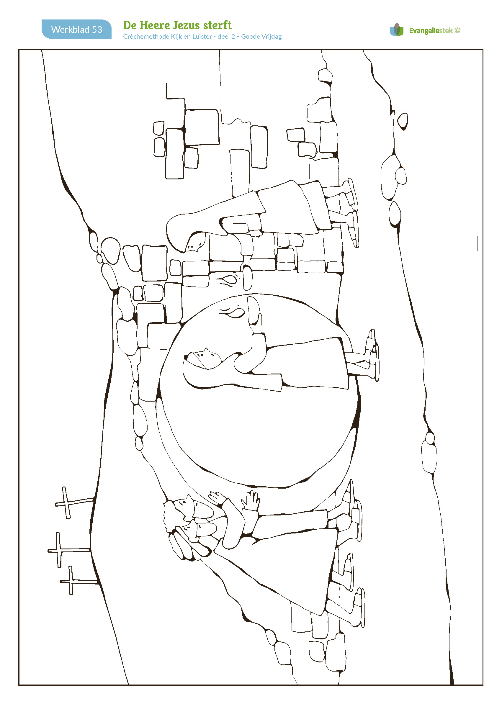 Deze verwerking hoort bij de crèchemethode 'Kijk en luister' van Evangeliestek en is vrij te gebruiken. De inhoudelijke les bij deze verwerking kun je los aanschaffen, evenals de methode in zijn geheel. Deze les hoort bij Goede Vrijdag.
