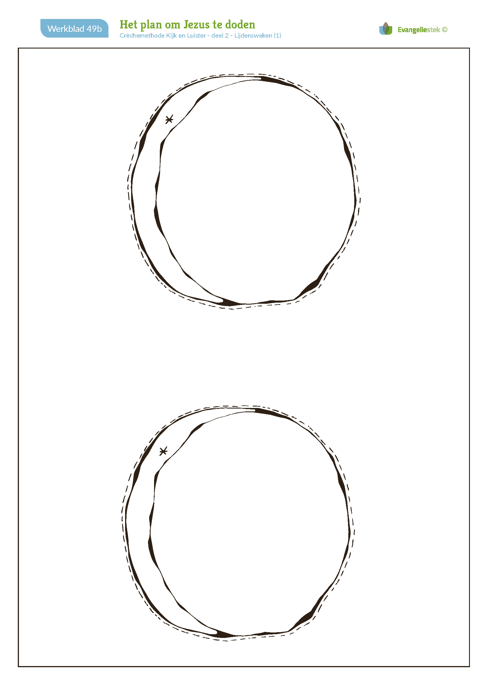 Deze verwerking hoort bij de crèchemethode 'Kijk en luister' van Evangeliestek en is vrij te gebruiken. De inhoudelijke les bij deze verwerking kun je los aanschaffen, evenals de methode in zijn geheel. Deze les hoort bij de serie 'Lijdensweken' (1/4).