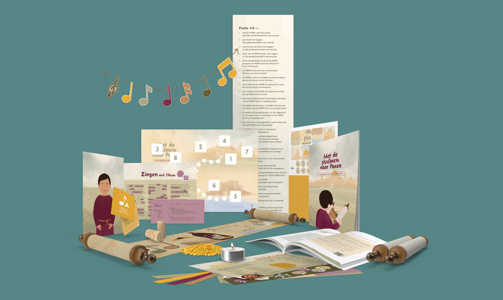 Het gezinspakket ‘Met de psalmen naar Pasen’ is verkrijgbaar in de webshop.